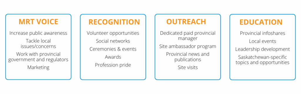 CAMRT-SK is the Saskatchewan provincial arm of the CAMRT and represents additional programs, services and provincial advocacy in addition to your CAMRT membership. Below are some of the provincial services and support that will be available through the CAMRT-SK.